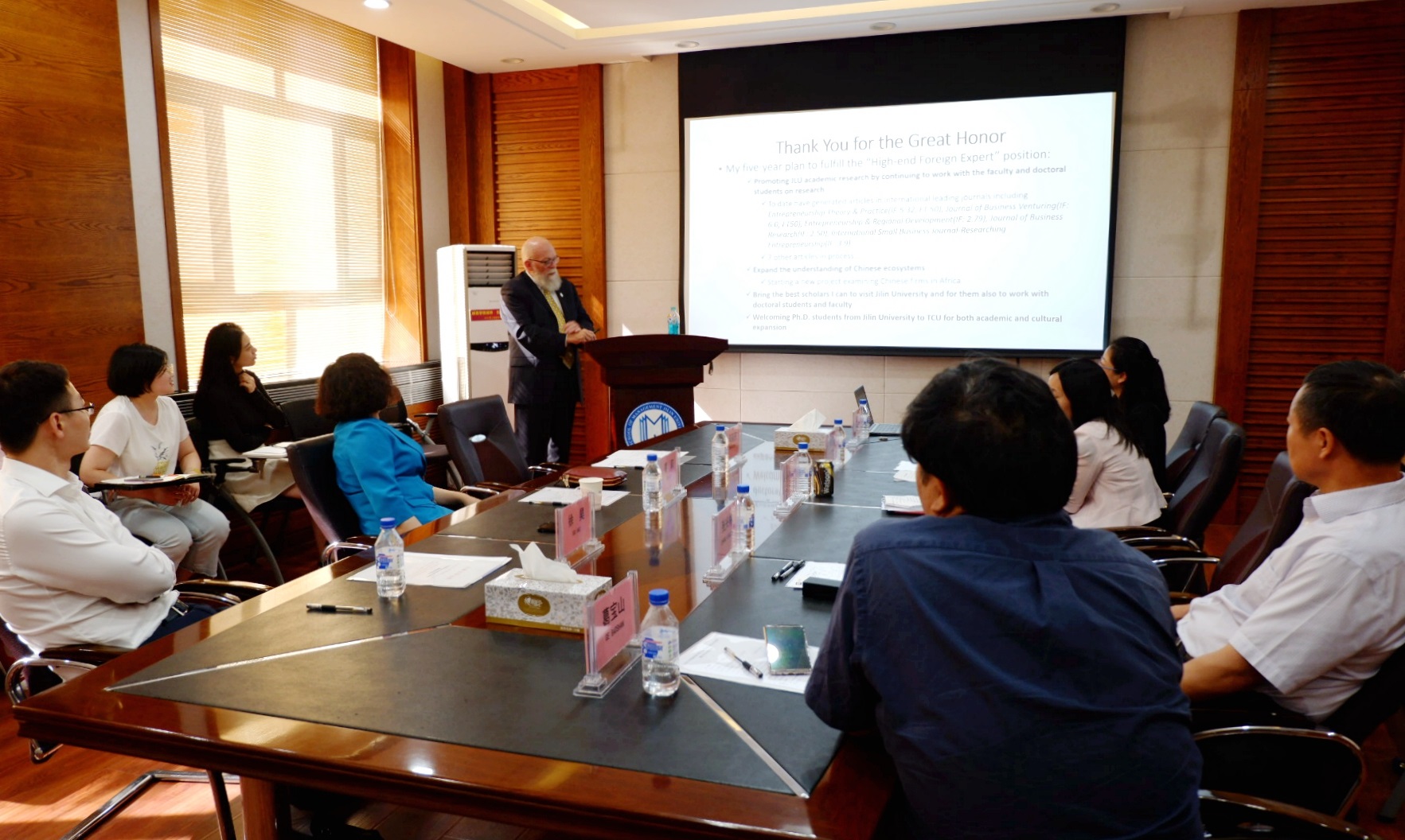 Garry D. Bruton教授畅谈了受聘感受。他说:能够入选探花 高端外国专家是他的荣幸,他非常感谢中国国家外专局、探花 、管理学院给予他此次合作机会,未来与探花 的合作将是他学术生涯的重点。在高端外国专家的首个聘期内,他将在指导探花 相关学科师生发表高水平国际论文、申报和开展国际合作科研项目、为我校引荐知名国际学者、为我校师生提供国际交流机会、共同指导博士研究生等方面与我校加强合作,开展高水平的国际化研究,为探花 的发展作出贡献。