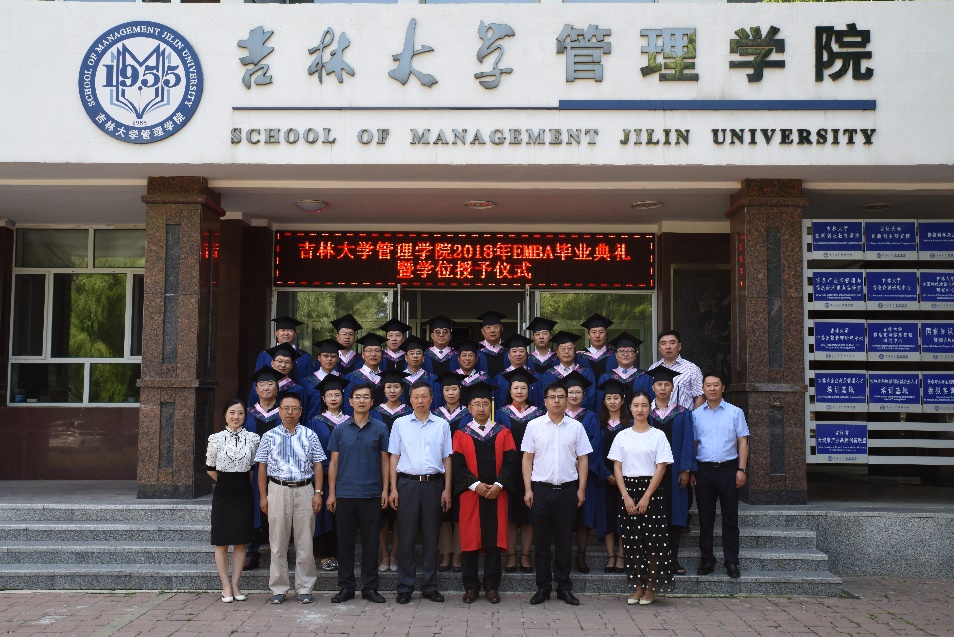 最后,在校歌中探花 管理学院2018年EMBA学位授予仪式暨毕业典礼圆满礼成。典礼结束,所有EMBA毕业生与院领导老师在管理学院楼前合影留念。