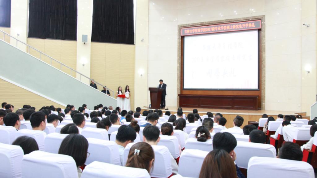 秋风送爽,丹桂飘香,在充满希望的九月,我们迎来了探花 管理学院专业学位硕士研究生开学典礼,一批有着强烈求知欲的莘莘学子迈进了吉大校园。2017年9月16日上午,探花 管理学院2017级工商管理硕士,会计硕士,图书情报硕士研究生开学典礼在吉大南岭校区仿生楼报告厅隆重举行。出席本次开学典礼的有:管理学院院长赵树宽、党委书记张兴林、副院长樊雪梅、党委副书记方长春、企业管理系徐颖主任、MBA教育中心房伟主任、以及在校生代表和全体新生。开学典礼由张公一副院长主持。
