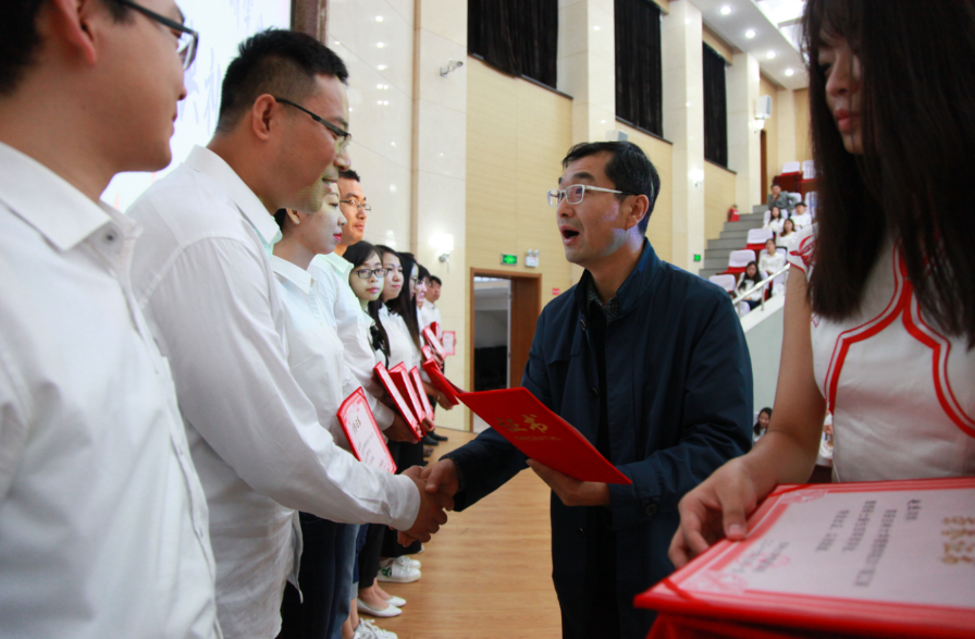 佩戴完毕后,方长春副书记、樊雪梅副院长为获得管理学院MBA奖学金的同学一一颁发了荣誉证书。