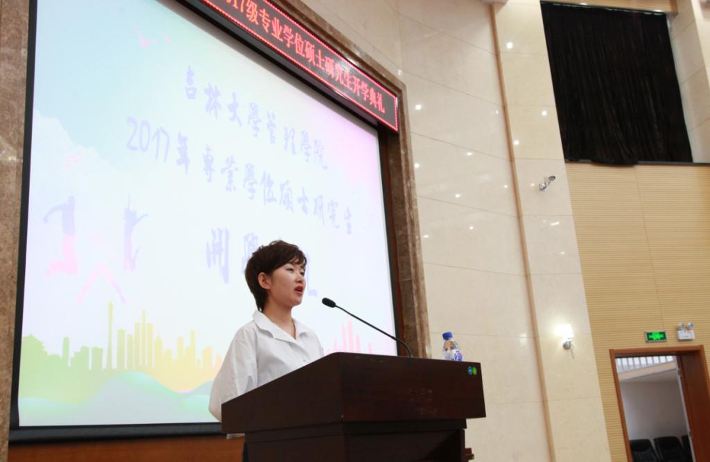 接着,2016级工商管理硕士刘宇同学代表管理学院在校生发言,并以自己一年来的学习经历为例,鼓励同学们在研究生阶段勇于尝试,珍惜来之不易的学习机会。2017级MBA的张展同学则代表全体新生进行了发言。