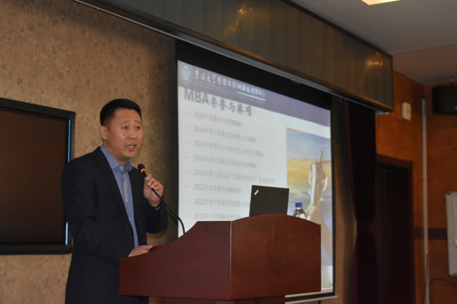 接下来,16届MBA韩百儒同学就自己报考管理学院MBA的原因,入学后的学习收获,精彩的MBA校园生活,真挚的同窗情义及毕业后对工作的提升与帮助进行了生动的阐释。