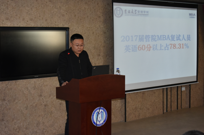 然后,管理学院16级MBA李凌宇同学、17级MBA新生娄岩同学分别就管理类联考、外语的备考经验向考生进行交流,期间李凌宇同学特别就“备考时间分配”、“平均主义阅卷方式”进行了生动详细的介绍。