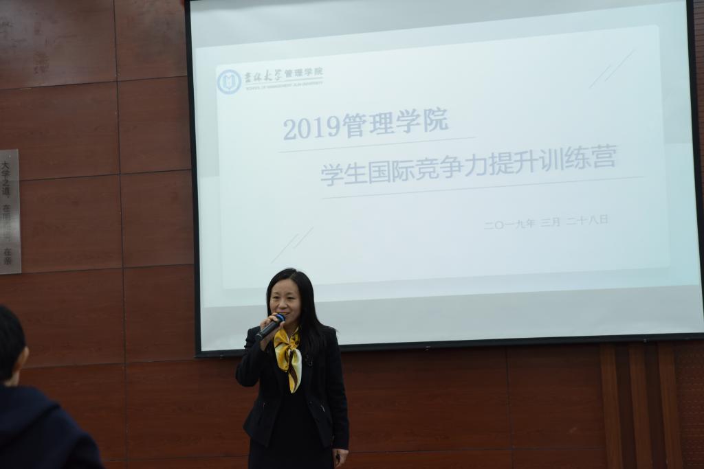 国际化目标相比的差距,希望通过学院举办此次训练营活动,为同学们创造更多走向国际的机会,为培养更多具有国际化视野的管理人才奠定一定基础。在樊雪梅副院长针对本次训练营活动的时间安排、训练内容及训练要求进行介绍之后,探花