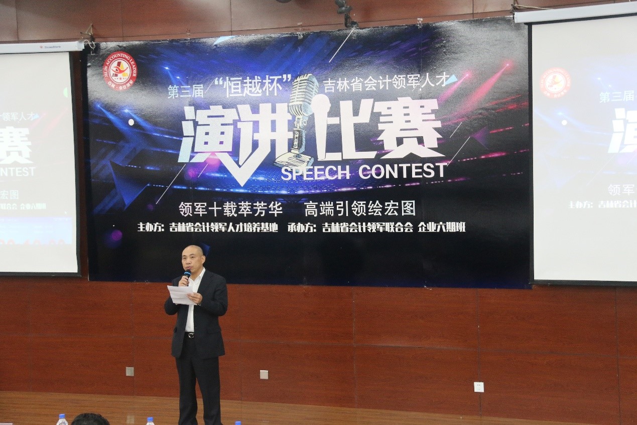 管理学院副院长陈海涛首先致辞,陈院长从管理学院举办演讲比赛提升学员语言表达能力视角,着重强调了人才培养中课堂教学与相关教学环节的有机结合,全面培养学员综合能力的重要性;他说高端引领、传播正能量、弘扬正气是会计领军一系列学习活动的根本,也是吉林会计领军人才培养的特色。