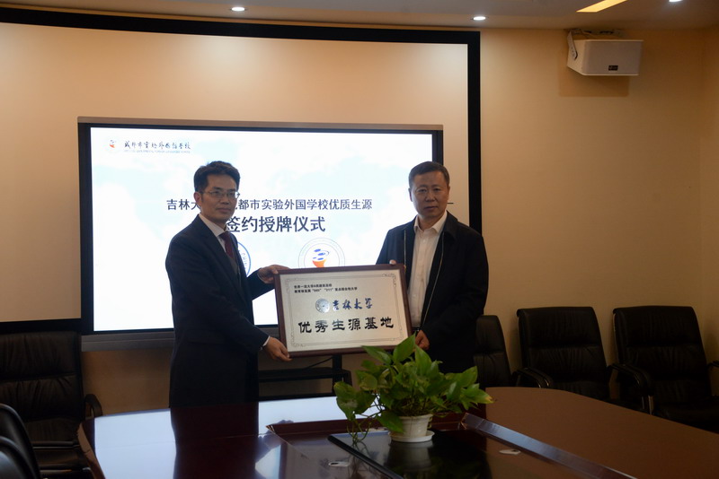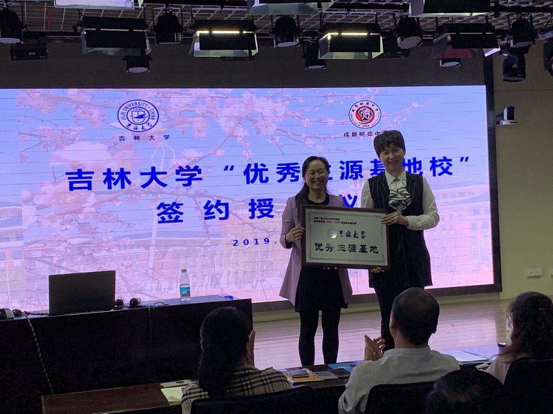 的整体情况以及招生相关政策。同时就进一步加强合作、优势互补、互助共进等方面进行了深入探讨。张兴林书记代表我校向新都一中和成都实验外国语学校优秀生源基地授牌。王晰巍副院长代表我校对树德中学授牌优秀生源基地,并为各位家长进行了招生宣讲。