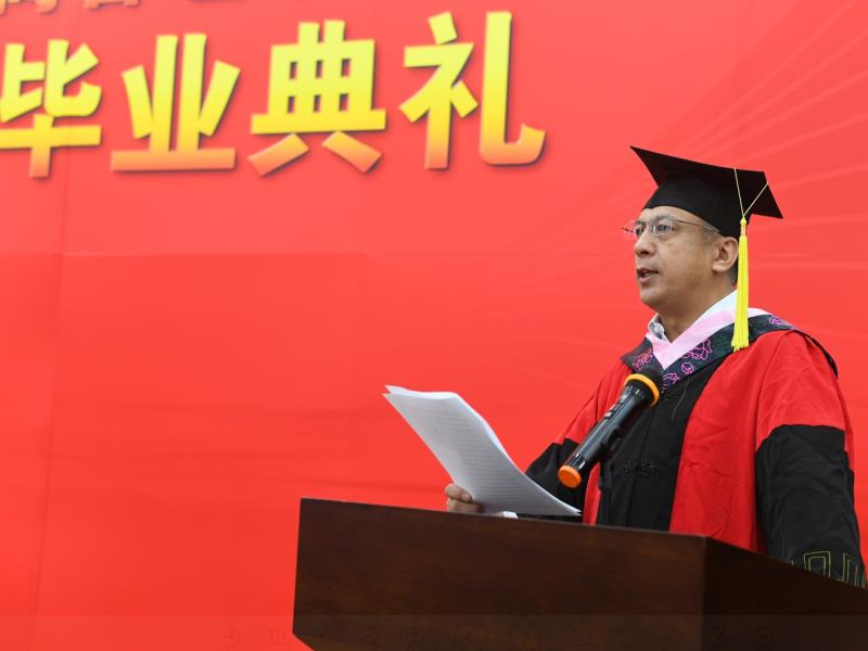 管理学院院长李北伟教授向取得硕士学位的同学们表示热烈的祝贺,并发表热情洋溢的致辞。他鼓励同学们以创新思维回响时代召唤,增强工作的科学性、预见性,在时代浪潮中赢得主动、赢得优势、赢得未来。做一名充满正能量的管理者,不辜负新时代赋予的责任与担当。以赤诚情怀坚守致知初心,将知识和才华无私地奉献给国家的富强与民族的振兴,在奉献中体验巅峰人生的美好境界。