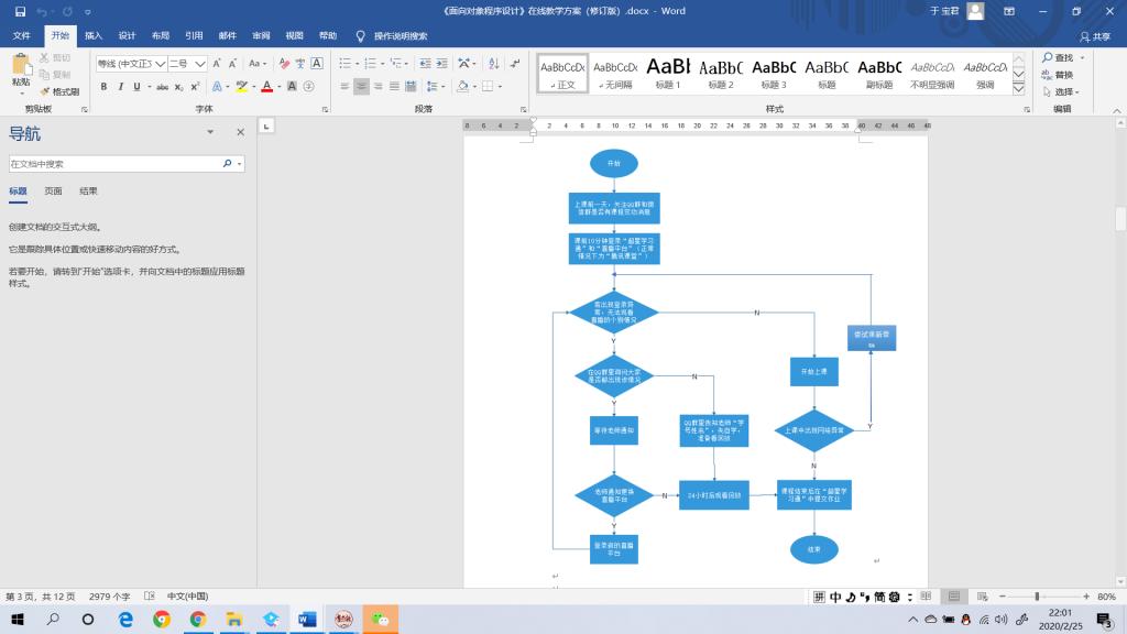 为了确保所选的平台经得起考验,于老师特意提前主动联系学生,在2月10日组建了课程群。并在2月15日、23日先后进行了两次试课。并根据试课中反馈出的问题,形成了书面的在线教学方案——《“面向对象程序设计”课程在线授课方案》。在方案中,详细地写明了在线教学所需的平台及注册方式、教学流程、课前准备、课后答疑、异常情况的处理等。