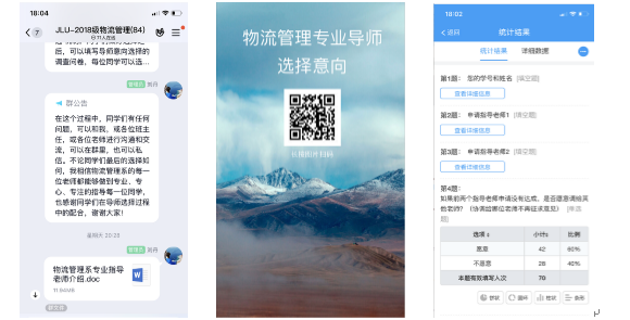 3月22日晚8点物流管理系16位专业导师和物流管理专业本科生69人共同在QQ群上召开了本科生导师双选主题班会,让学生充分了解专业导师选择的目的、意义及方案实施的具体安排。同时,学生也可以和所有的专业导师进行互动,通过充分的沟通和交流,加强学生和导师之间的相互了解;并借助问卷星平台让学生填写导师选择志愿和要求、希望获得的指导或机会及未来的规划和打算。最后给学生三天时间,在认真考虑之后填写导师意向选择的调查问卷。