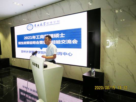 受新冠肺炎疫情影响,按我省防控要求和学校疫情其间进校政策,本次MBA招生银行专场说明会暨备考经验交流会采取“线上为主+线下小规模”同步会议形式举办,既线下会议在长春市高新区长春市双创中心举办、线上参会通过钉钉直播方式,参会银行员工代表近150人。长春市双创中心工作人员会前对现场进行了专门消毒、通风和布置其他后勤保障工作,并对每位线下与会人员进行体温测量登记,会议于2020年8月15日下午1:30如期顺利举行!
