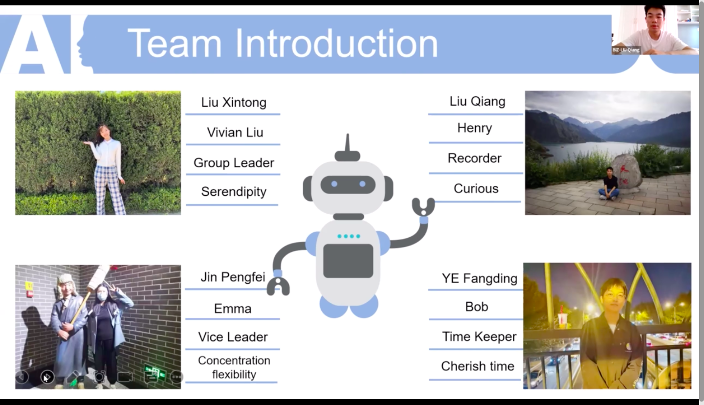 破冰仪式由教授介绍和小组介绍两部分组成。会议开始,先由Jochen教授进行自我介绍并说明课程的基本概要,明确了本次课程的背景、意义及目标,使同学们增进了对项目课程内容的了解程度,为以后的课程学习和项目研究做好充分的准备和铺垫。教授讲话结束后,六组成员分别按照顺序进行了小组自我介绍与小组课题介绍。大家的小组介绍丰富多元,从个人情况介绍到兴趣爱好介绍,从小组名称含义解读到对课题的初步理解,各组均按时顺利完成了破冰任务和介绍任务,使彼此之间的认识和了解更加充分,结识到了更多的学习伙伴,也初步找到了自己的研究方向。最后,对于同学们精彩的表现,Jochen教授给予了充分的肯定,并期待同学们可以在后续的课程学习中收获满满!