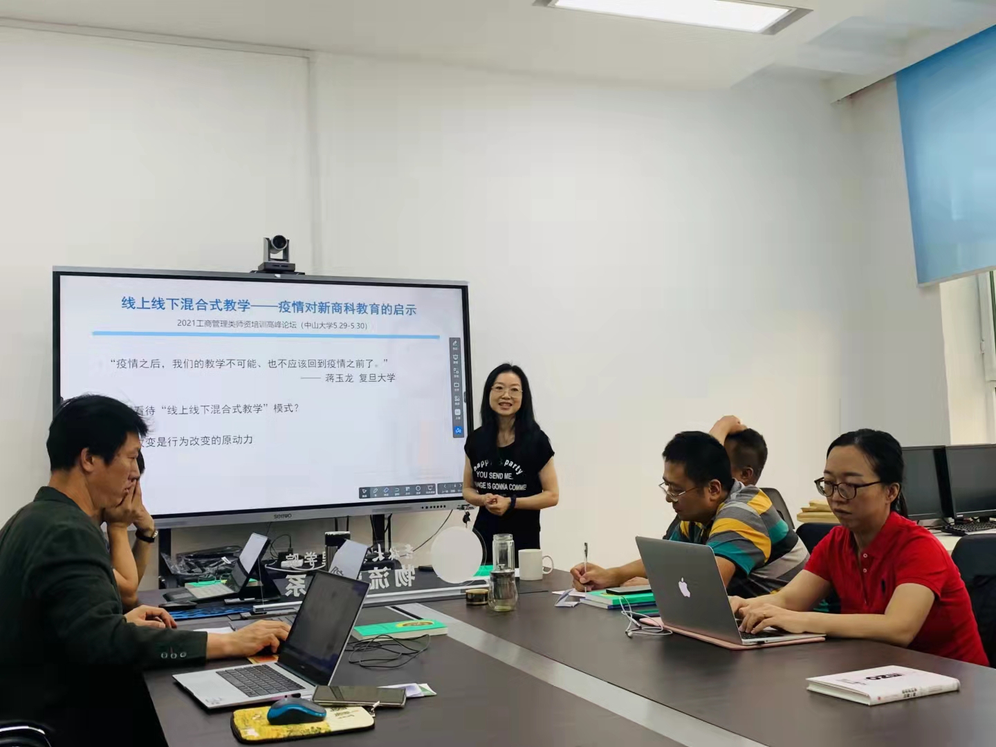 分享环节,王杏老师就此前参加的“线上线下混合式教学——疫情对新商科人才培养的启示”培训进行了汇报交流。以“疫情之后,我们的教学不可能、也不应该回到疫情之前了。”开篇(引自复旦大学蒋玉龙教授),王杏老师分享了席酉民(西交利物浦大学执行校长)、张新民(对外经贸大学原副校长)、魏江(浙江大学管理学院院长)、王重鸣(浙江大学人文资深教授)等专家的培训。分享起到了抛砖引玉的作用,老师们深切感受到:每一位教学名师,都具有深厚的科研功底。紧接着,陈金涛、王春、赵中华、刘丹等多位老师一一发表了自己的看法,大家就认知转变、科研难点、科研氛围、教学改革等展开了热烈的讨论。大家坚信,只要有恒心,无论是科研还是教学成果,不断努力,一定会有收获。