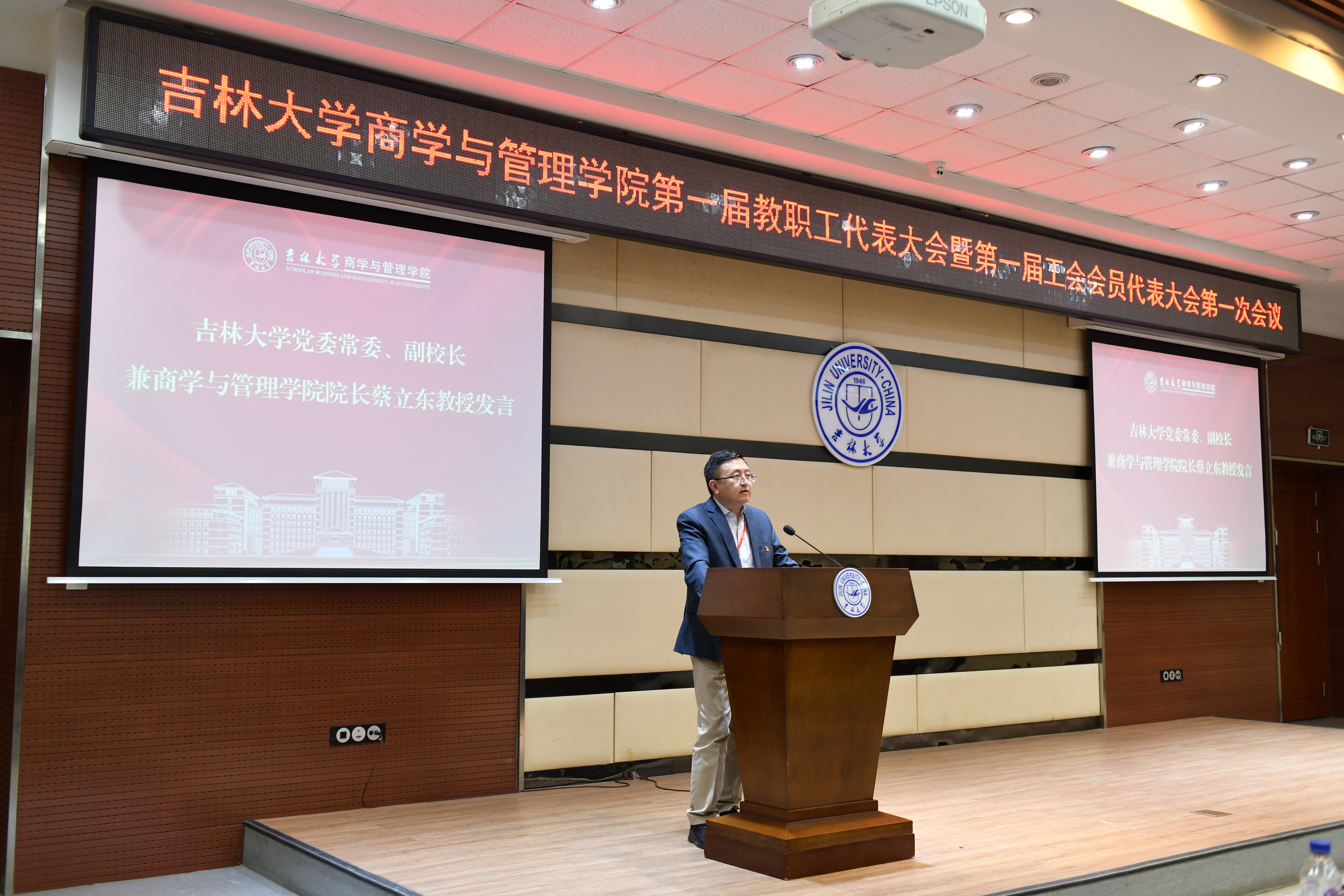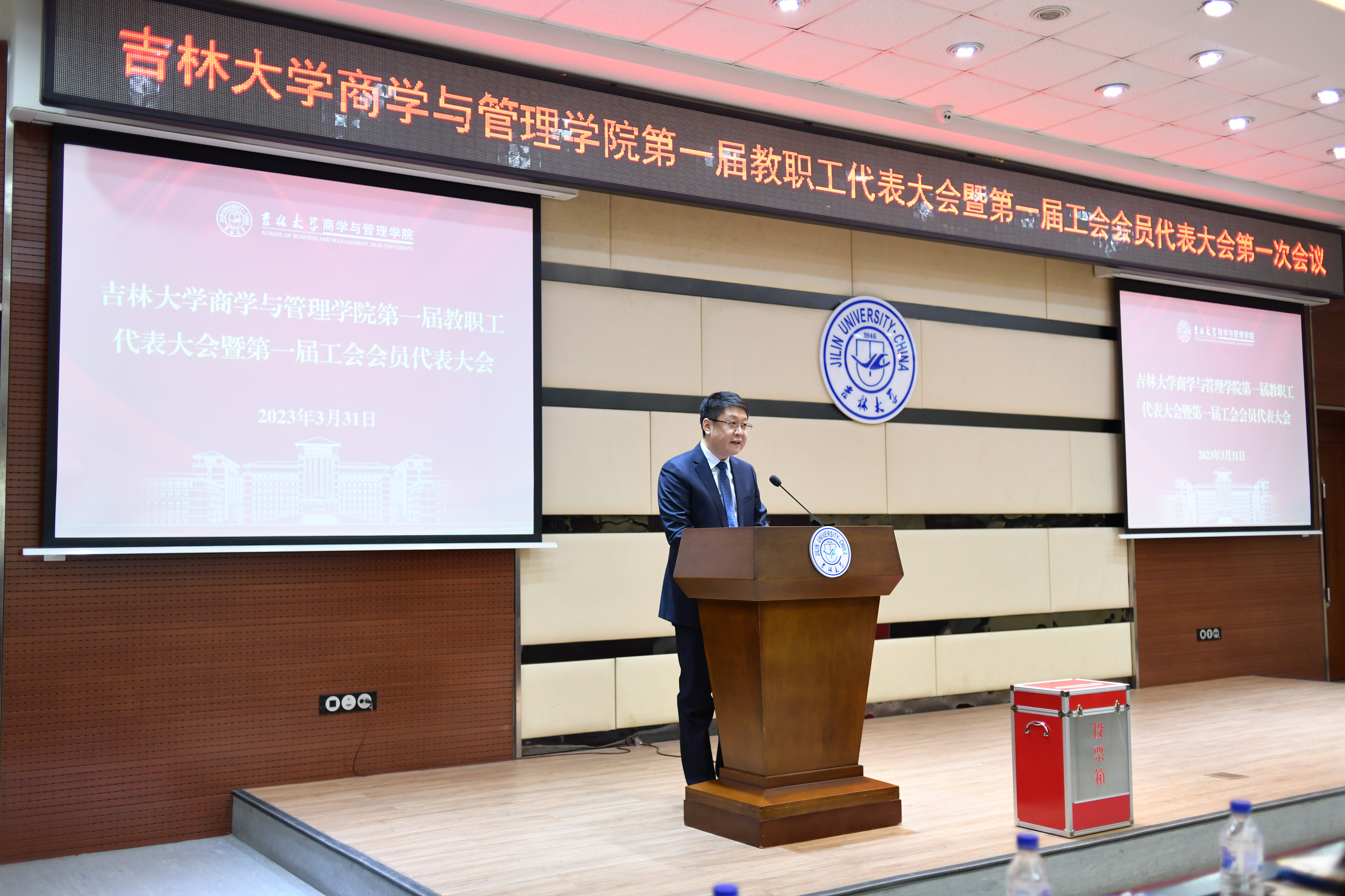 院长蔡立东教授发言,对学院教代会、工会过去一年来取得的成绩给予了充分肯定,对大会的成功召开表示了祝贺。他指出,本次学院双代会是一次意义重大的民主实践活动,通过充分的意见征求、多轮次的细致讨论、深层次的总结提炼,学院代表们提出了许多有建设性的提案、想法,成为了学院下一步工作开展的重要助力。同时,本次双代会也盘点了过去一年学院取得的成绩,回应了教职工群体的关切,肯定了学院各方面的工作成效,加强了学院教职工之间的理解。同时,学院也通过此次双代会充分挖掘了在发展过程中的一些疏漏之处,这对学院下一步的建设和发展有着十分重大的意义。蔡立东教授表示,学院在全体教职工的努力奋斗下,一定会取得更为卓越的成就,一定能绘就更美丽的画卷。