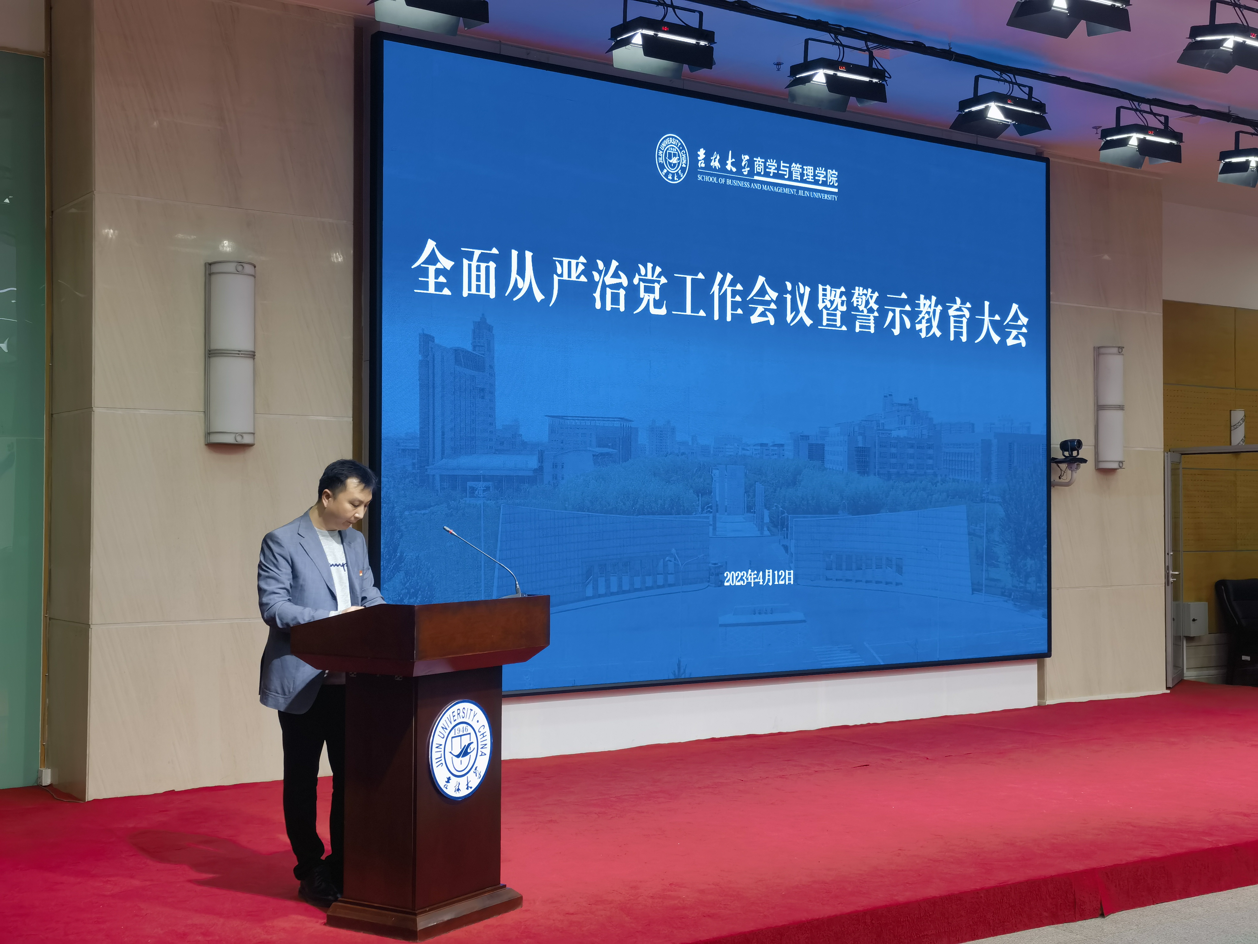 会上,党委书记赵军作总结发言。赵军书记表示,学院将严格贯彻落实学校全面从严治党要求,认真推进党风廉政工作向纵深发展。赵军书记对学院下一阶段全面从严治党工作提出三点意见。一是要提高政治站位,加强政治监督。推动师生深刻领悟“两个确立”,将其转化为做到“两个维护”的思想自觉和行动自觉。二是要扛起政治责任,严管厚爱并重。要将纪律建设摆在更加突出的位置,整合监督力量,汇聚监督合力,充分运用反面典型加强警示教育,避免“无知犯错”,杜绝“知法犯法”。三是要保持政治清醒,筑牢廉政底线。要持续深化落实中央八项规定精神,严守道德底线,不碰法律底线。严格执行师德师风一票否决制,细化日常监督,努力营造风清气正的良好政治生态与和谐善治的干事创业氛围。