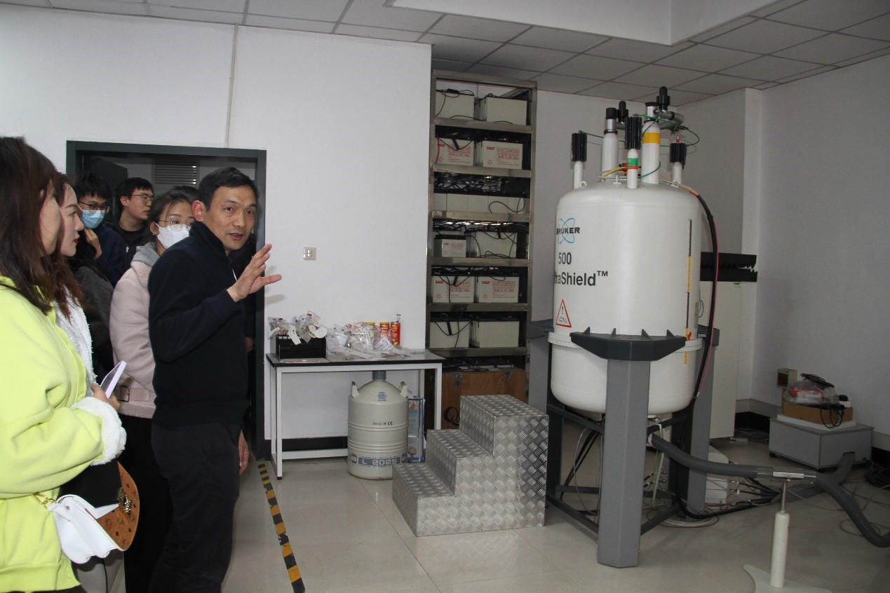 最后,董教授详细介绍了超分子化学的现实应用与前景展望。同学们参观了超分子实验室自助式公共仪器平台并与董教授亲切互动。