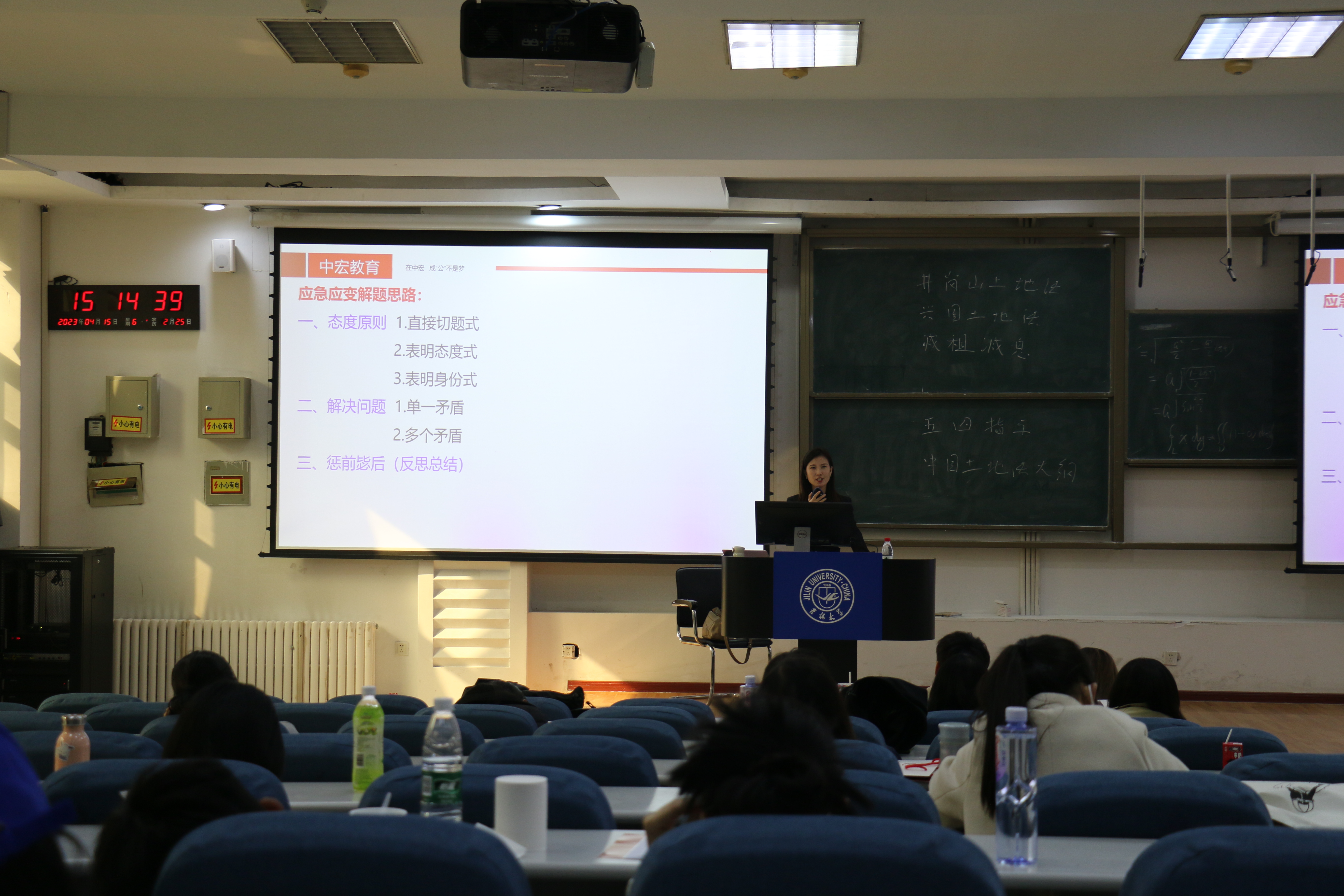 于敬信楼F2阶梯教室开展“职院启航”就业指导系列公益培训活动。讲座由就业创业指导与服务中心邀请到具有九年公考培训经验的讲师张鹏志主讲,探花