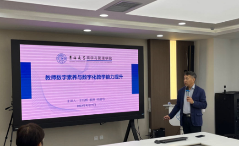 举办教育教学论坛,校督导王珏辉教授为学院近三年新留校教师和其他对数字化教学感兴趣的教师做题为《教师数字素养与数字化教学能力提升》的报告,学院一线教师近20人参会聆听报告,论坛由马捷副院长主持。