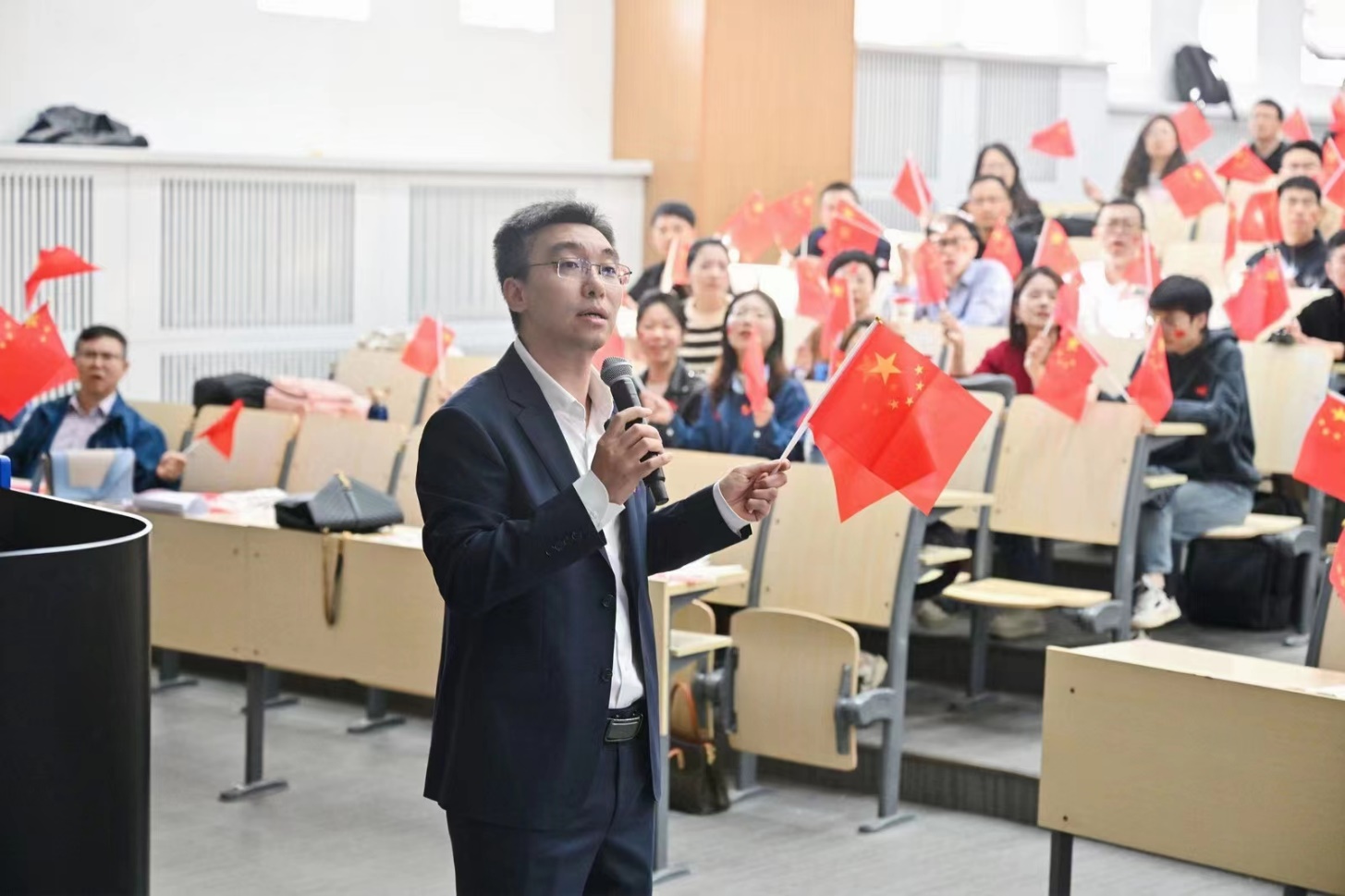 梁志平首先代表学院、中心对授课教师致以深深的敬意,并同MBA学子一道,引吭高歌,唱响心中对祖国的无限热爱与深情祝福。我泱泱华夏,一撇一捺是脊梁;神州大地,一思一念是未来;浩浩九州,一文一墨是骄阳;山河星无恙,吾辈当自强。