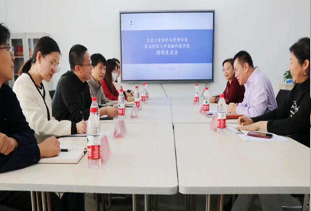 第一调研组由应用金融系丁志国教授、董竹教授、孙秋枫副教授三人组成,于2023年11月20日赴东北财经大学进行学科调研,与东北财经大学金融科技学院副院长李凤羽教授、副院长王谨乐副教授及教师代表进行了座谈。李凤羽副院长介绍了东北财经大学金融科技学院创建的历史、师资情况、人才培养、招生以及毕业生就业等情况。丁志国教授说明了此次调研的目的和希望交流的多方面问题。董竹教授介绍了探花