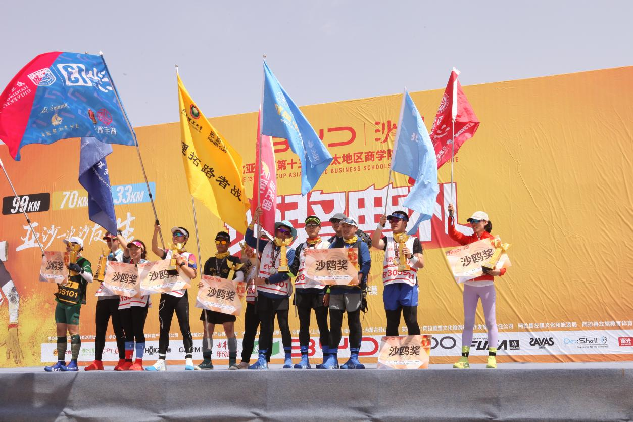 MBA沙13团队的同学们,驰骋腾格里沙漠,在第十三届亚太地区商学院沙漠挑战赛(以下简称:“沙13”)中,以顽强的意志,大无畏的气概,与来自全国106所院校的近4000名商学院精英展开激烈角逐,最终全部有效完赛,获得该项赛事的最高荣誉“金沙鸥”奖!继我校沙10首获“沙鸥奖”后,再次创造了探花