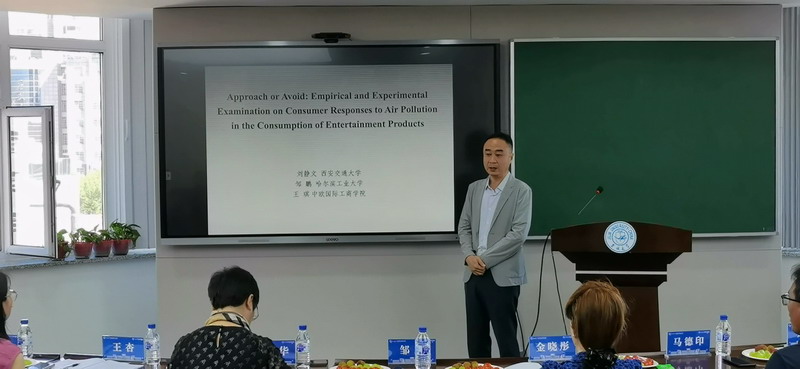 哈尔滨工业大学经济管理学院邹鹏教授围绕新媒体技术影响下的污染问题与娱乐消费进行主题报告,他在研究中基于新媒体平台数据对空气污染指数与娱乐消费领域进行交叉研究,发现空气污染与电影票房存在倒U型关系,为基于新媒体运营的娱乐产业营销提供重要借鉴。