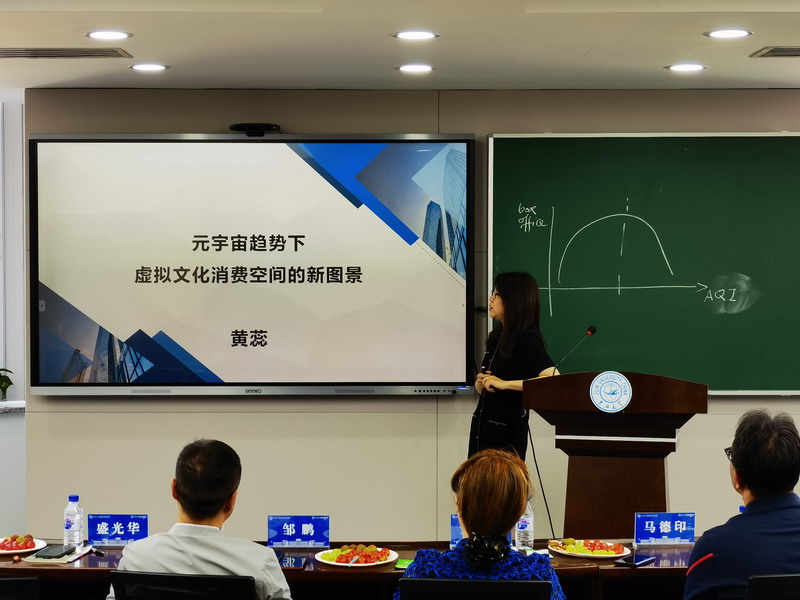 黄蕊老师在《元宇宙趋势下虚拟文化消费空间的新图景》的主题报告中,介绍了以知识-科技成果为内在动因的虚拟文化空间建构,指出虚实融合空间建构需要通过技术服务日常生活、满足精神文化需要,强调消费者的主体性,符合公众意愿特征。