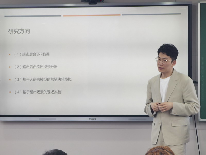 徐尉老师在《新技术背景下线下实体零售研究》的主题报告中指出了在新技术环境中重构实体零售行业以应对新挑战的必要性,并分享了其在研的基于大语言模型的营销决策模拟和基于超市场景的现场实验研究。