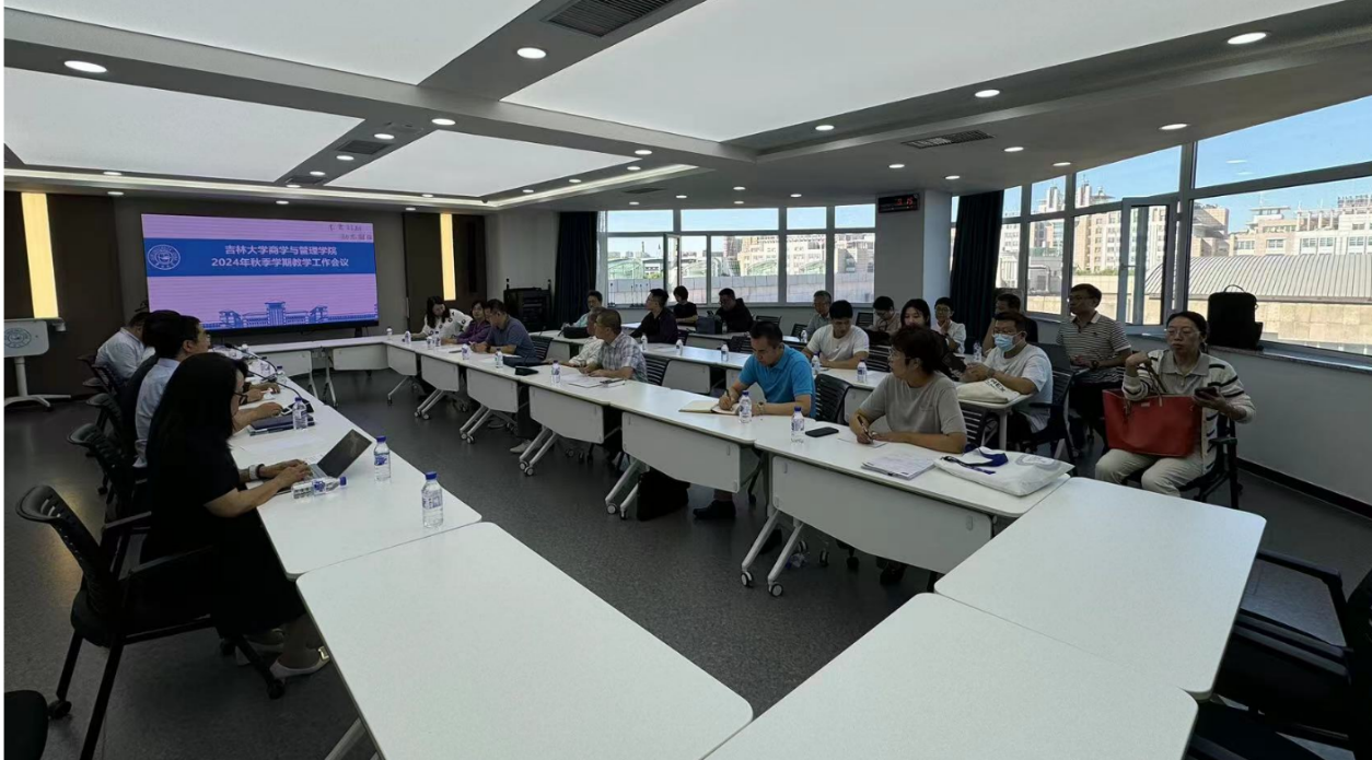 于9月3日召开新学期本科教学工作会议。会议分上下午两场进行,张屹山教授、蔡莉教授、李北伟教授、于桂兰教授、丁志国教授等参加会议。学院党委书记赵军、副院长樊雪梅、辛本禄、郭英彤、隋建利、李雪灵、马捷、校创新创业教育学院副院长费宇鹏、学院十三个教学系的系领导及骨干教师、本科教务办工作人员等50余位同志参加了会议。会议由郭英彤副院长主持。