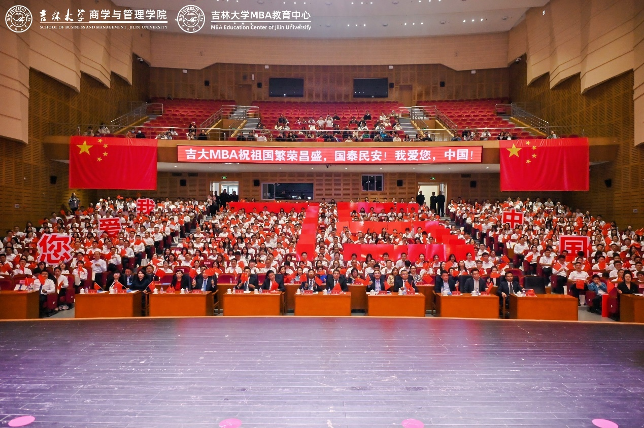 典礼开始前,商管MBA师生挥舞手中的国旗、共同唱响《歌唱祖国》,为祖国母亲生日送上最真挚的祝福。
