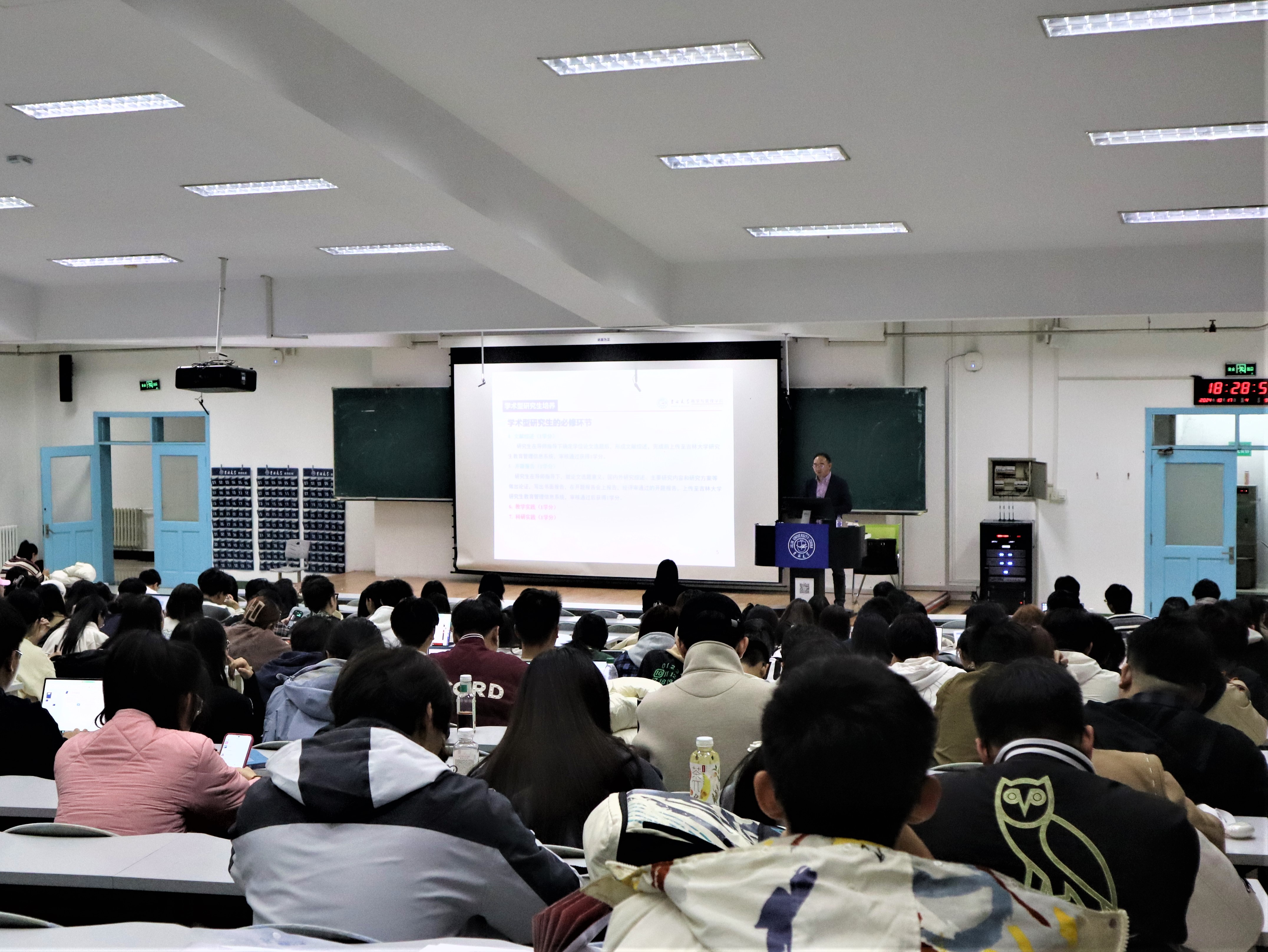 常务副院长隋建利教授主讲,学院研究培养办公室老师及2024级全体研究生参加。