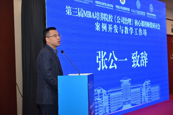 副院长张公一教授,MBA《公司治理》课程负责人、浙江工商大学工商管理学院(MBA学院)曲亮教授分别致欢迎辞。