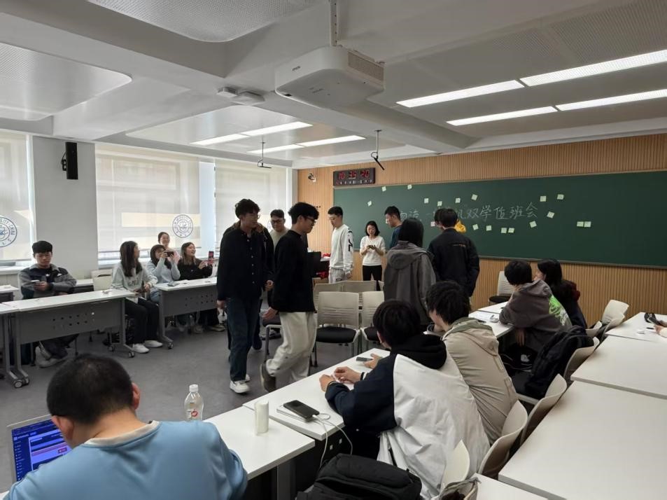 最后,班主任王杏老师表达了希望建立“欣欣向荣”的班风的期望,班级同学能够增强凝聚力、互相支持、共同成长,并表示将持续推进“班主任1v1对话”、“学习内驱力主题工作坊”、“时间管理工作坊”等常态化班级活动。此次班会的成功举办,不仅丰富了同学们的校园生活,还为班级的和谐发展奠定了坚实的基础。期待在未来的日子里,双学位班的同学们能够继续携手并进,共创美好未来。