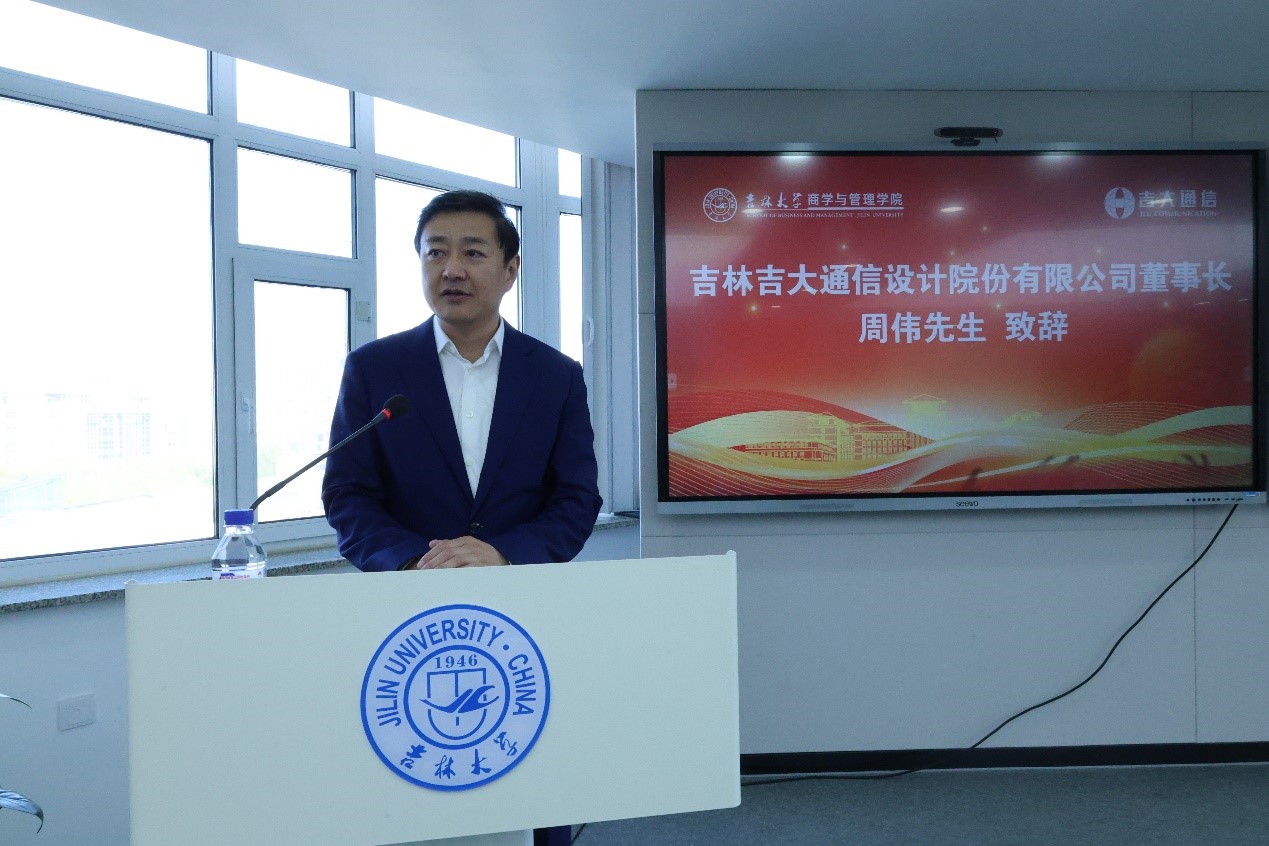 吉大通信设计院股份有限公司董事长周伟在致辞中向商管学院培育时代新人,勇攀科学高峰的精神,表示崇高的敬意。他期待此次合作能为吉林全面振兴注入澎湃的智力引擎,矢志开创校企共生共荣的新境界,谱写协同创新的时代篇章。