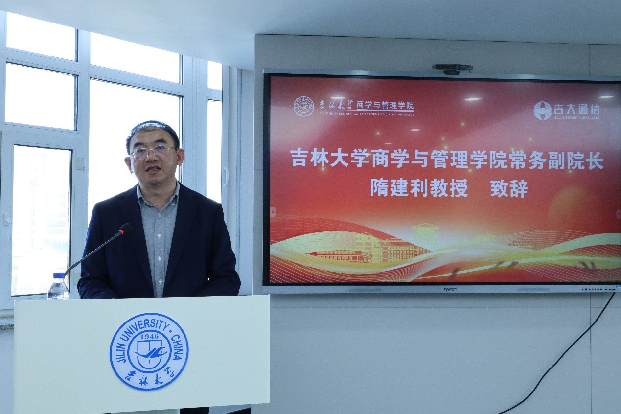 常务副院长隋建利教授在致辞中向吉大通信对学院的信任致以由衷的感谢,同时也向踏上智慧征途的全体学员表示诚挚的祝贺!他以“三盏明灯”照亮成长航路:在知行合一中锻造改革创新的锋芒;于变局激流中锚定信念引领的坐标,以躬身力行扛起通信强国的使命担当。鼓励全体学员不负殷殷期许,勇毅前行!让智慧星火点燃产教融合的燎原之势,在数字中国的蓝图中镌刻吉大通信人的时代印记!
