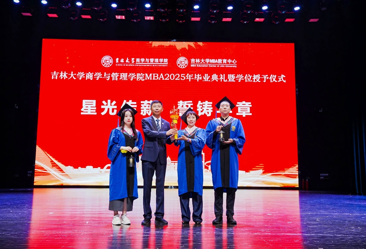 2025年MBA毕业典礼暨学位授予仪式在经久不息的掌声中圆满落下帷幕。这场盛典,既是对毕业生们学业征程的荣耀加冕,更是一场激荡着吉大精神的传承仪式。仪式镌刻下的不仅是 “吉大MBA”的金色印记,更将 “求实创新、励志图强”的校训熔铸成学生们前行的精神灯塔。从师长手中接过的学位证书,凝聚着课堂思辨的智慧、实践磨砺的锋芒,此刻正化作扬帆起航的风帆。愿 2025 届毕业生们携母校 “以诚信为裳,以创新为剑”的嘱托,在时代浪潮中锚定航向,以踔厉奋发之姿于商场挥写新篇,让吉大商管学院MBA的旗帜熠熠生辉。