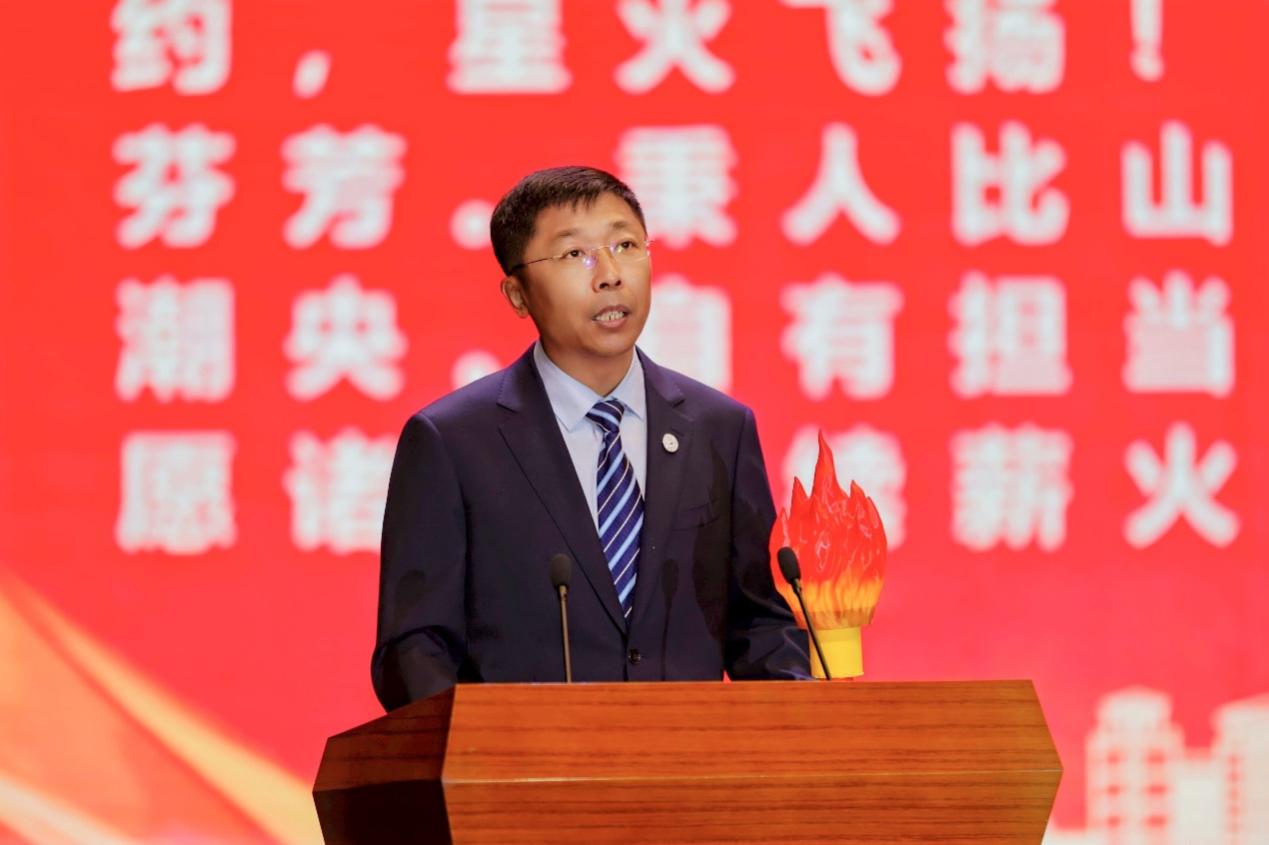 典礼步入庄重而感人的“星光传薪,誓铸华章”环节。学院党委书记赵军教授高擎象征吉大精神传承的火炬引领入场,毕业生代表温宏娜手捧“心灵之灯”紧随其后。当火炬在舞台交汇,全场学子点亮腕间星星灯,霎时星河璀璨。