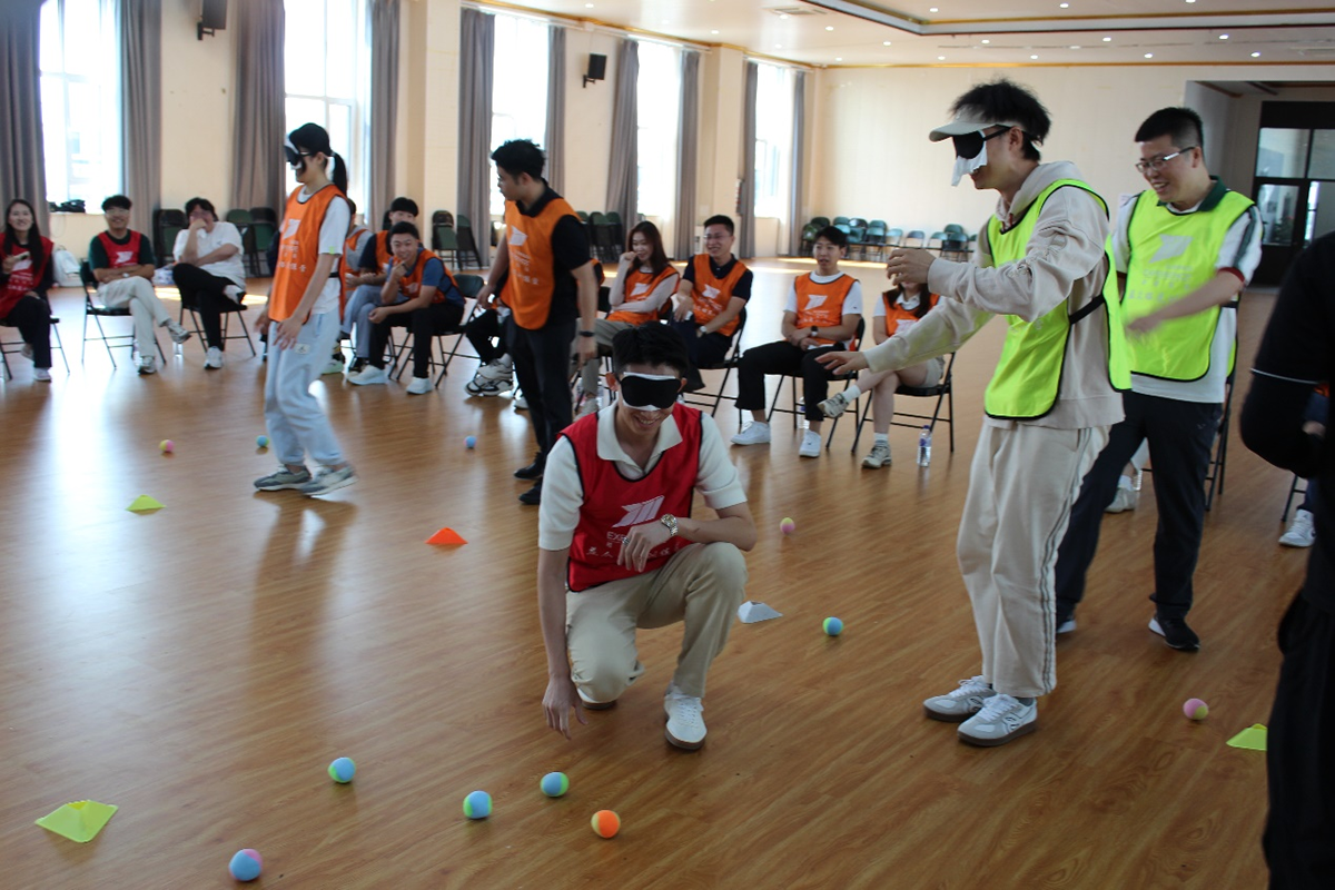 每组队员在规定时间内,快速行动,完成不同次数的颠球任务,在皮球和鼓面一次次撞击中,建立信任、形成合力,熔炼团队精神。
