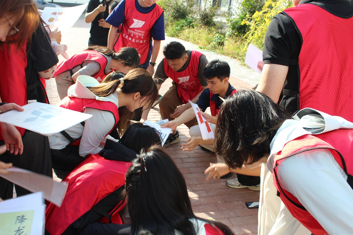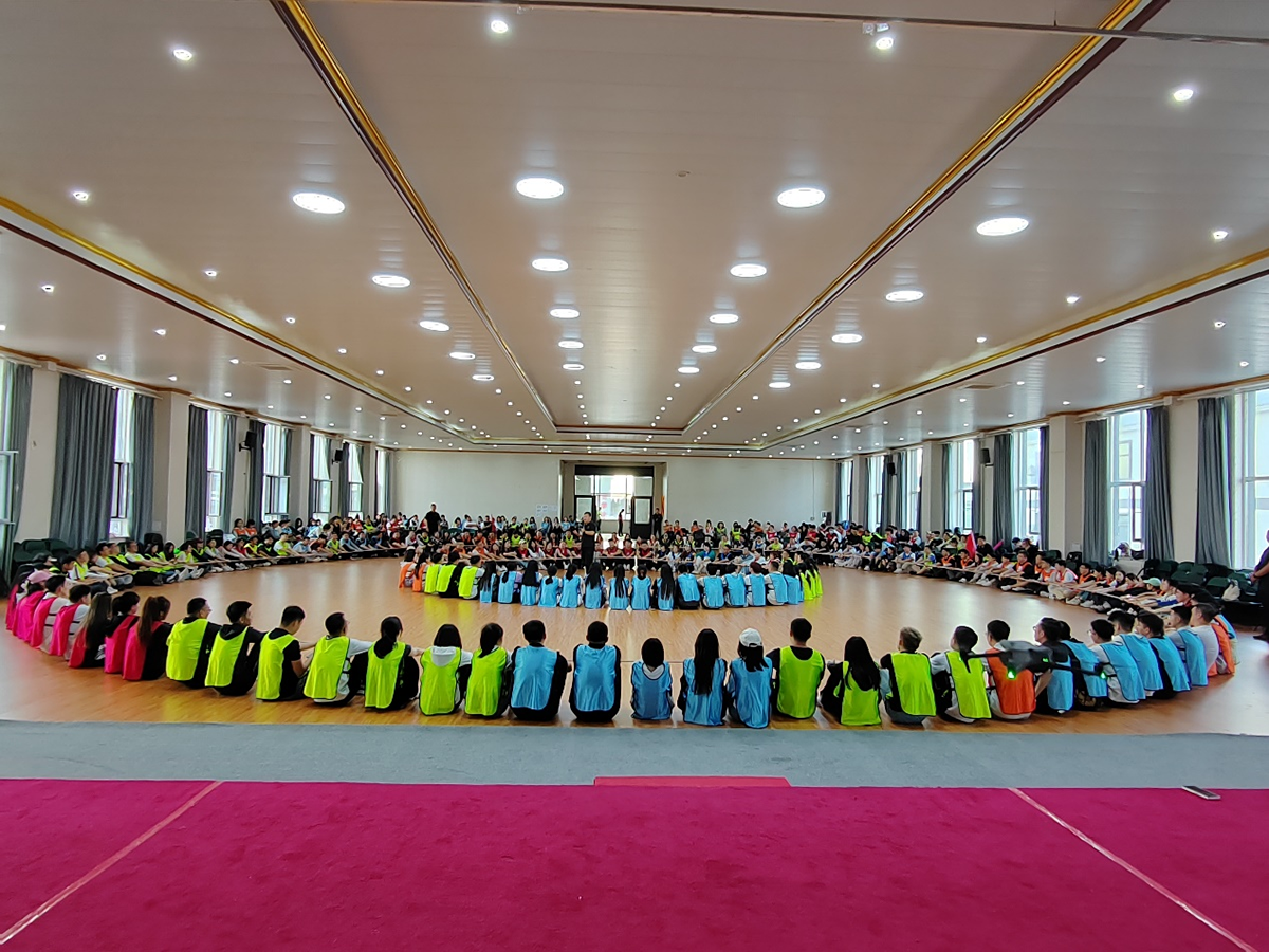 破冰热身后,同学们分成20个小组,进行团队展示。在响亮的口号声中,各组成员挥舞着队旗,迈着昂扬的步伐,激情起航。