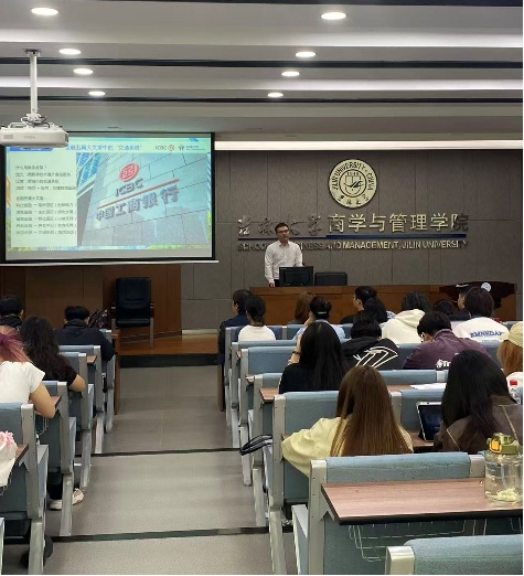 活动伊始,工行吉林省分行代表围绕“金融科技的演进历程与创新前沿”展开分享。以“数字金融是金融五篇大文章中的‘交通系统’”为生动比喻,阐明其“独立+协同”的支撑地位,并详解工行金融科技布局,让学生直观感受技术赋能金融的力量。随后的“工行杯”大赛宣讲环节,工作人员详细介绍了以“智启新程,Young动未来”为主题的第十六届“工行杯”全国大学生金融科技创新大赛赛程、参赛主体、赛道方向和激励机制等具体信息。最后,第十五届大赛获奖选手——探花