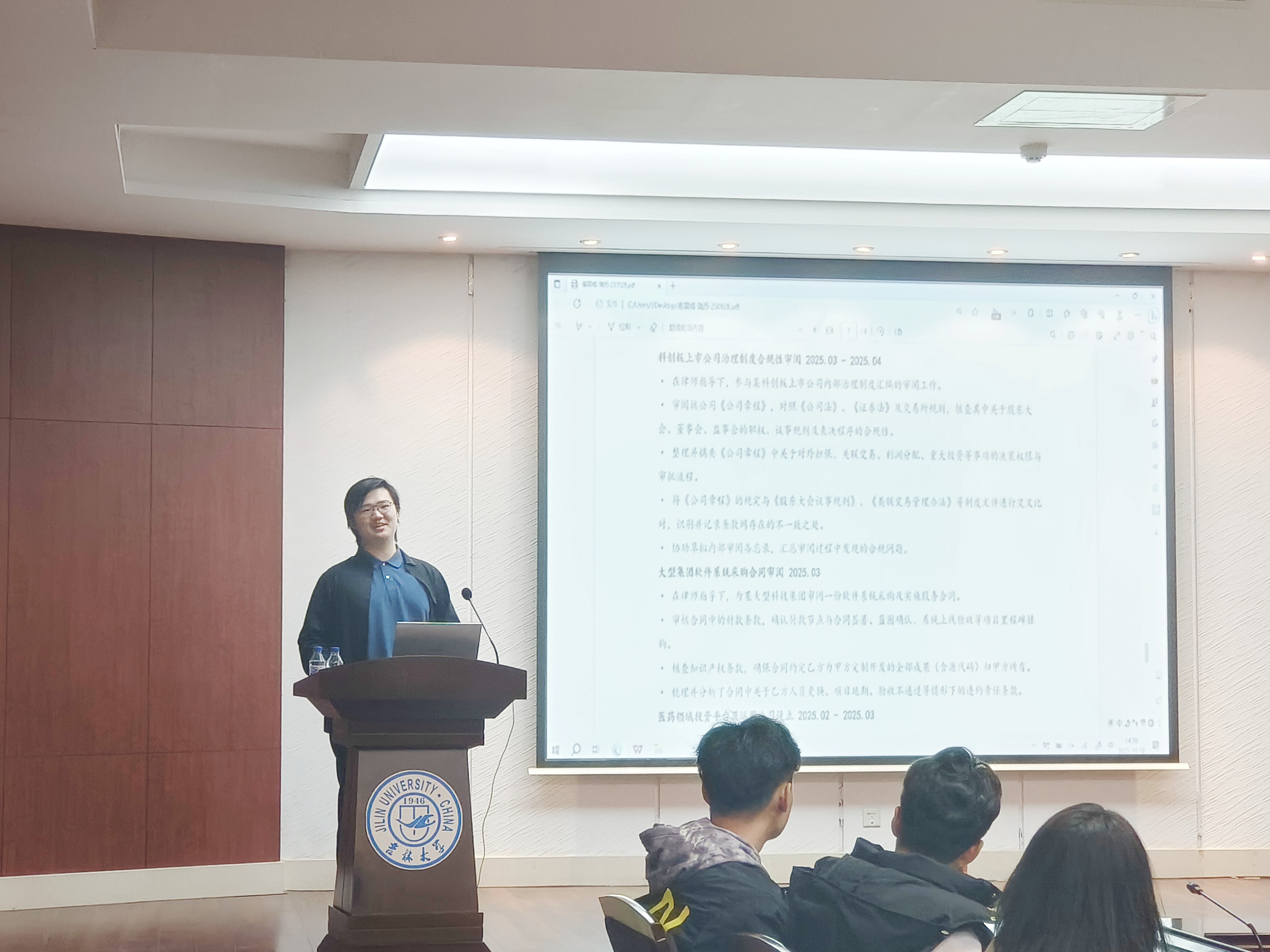 马捷副院长、技术经济系主任郭润萍老师、系书记任伶老师、副主任董碧松老师、刘玉国老师、王浩老师、曙光老师以及2025级工商管理-法学和大数据管理-法学双学位班本科生、工商管理(数字经济与投资管理方向)本科生参加本次讲座。本次讲座由马捷副院长主持。