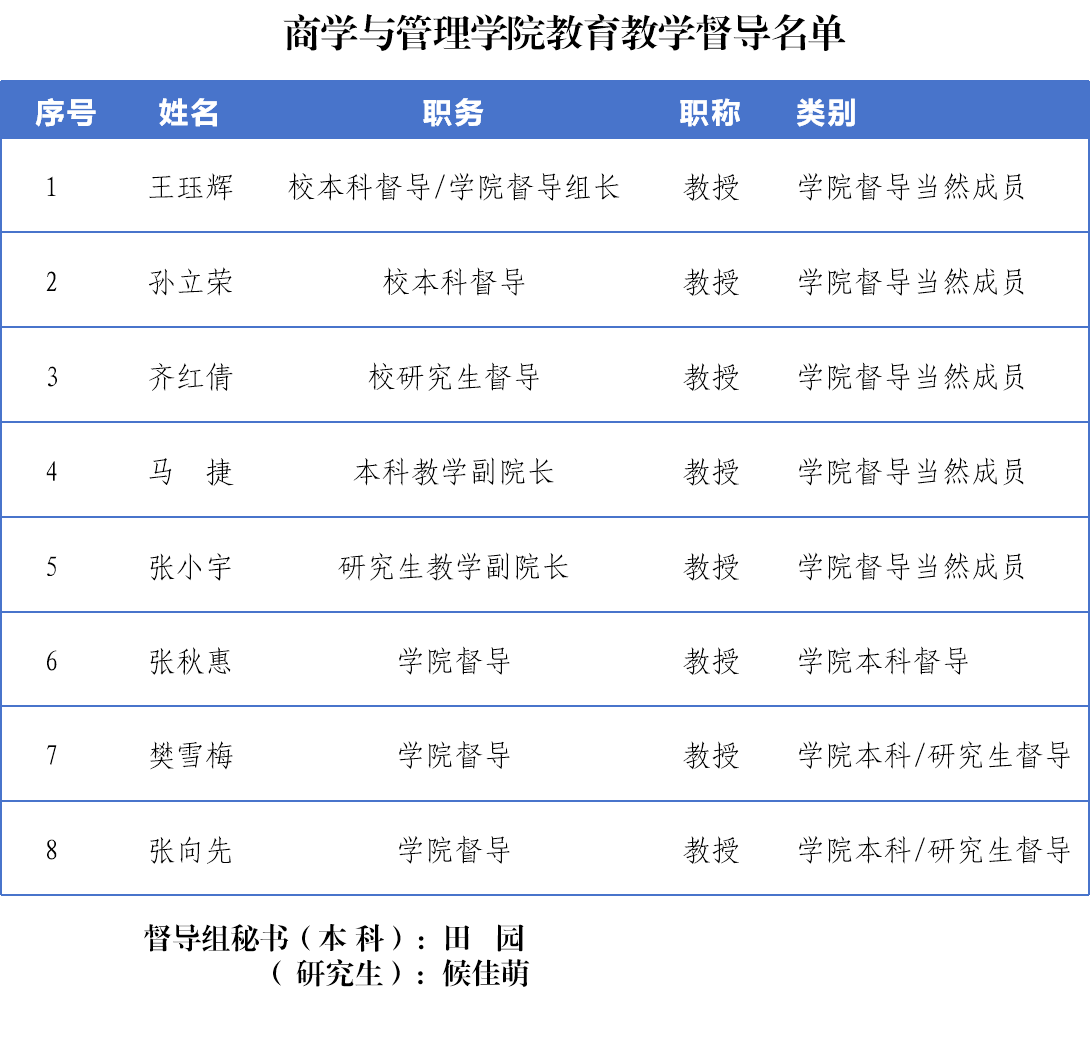 根据《探花 教育教学督导工作实施办法》(校发〔2025〕158号)、“关于开展院级教育教学督导专家聘任工作的通知”及《探花 教育教学督导工作实施细则》,经学院党政联席会讨论通过,聘任王珏辉等8位老师为学院教育教学督导专家,自2025年秋季学期开始进行学院本科和研究生教学督导工作。