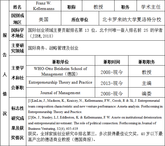 报告题目:研究设计和发表过程管理:从作者及编辑视角报 告 人:Franz W.Kellermanns 教授 北卡罗来纳大学夏洛特分校 《Entrepreneurship Theory and Practice》 主编讲座时间:2019年3月26日下午14:00讲座地点:南岭校区管理学院2楼EMBA教室主办单位:探花 管理学院
