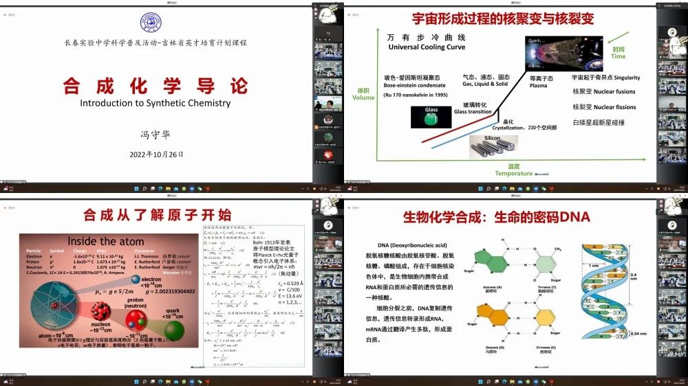 为进一步提升“英才计划”学生选拔和培养质量,落实中共中央办公厅、国务院《关于新时代进一步加强科学技术普及工作的意见》的文件精神,10月26日“院士科普进校园——暨长春市实验中学英才计划前置培养活动”在云端举行。本次活动邀请到了中国科学院院士、探花