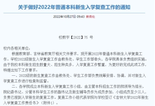 发布《关于做好2022年普通本科新生入学复查工作的通知》。