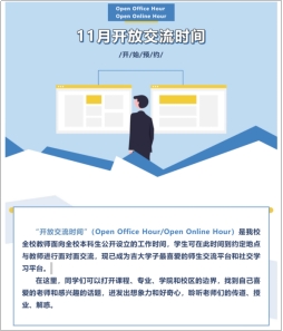 启动11月份“开放交流时间”(Open Office Hour/Open Online Hour)预约工作。“开放交流时间”是我校全校教师面向全校本科生公开设立的工作时间,学生可在此时间到约定地点与教师进行面对面交流,现已成为吉大学子最喜爱的师生交流平台和社交学习平台。2022年11月开放交流时间有来自31个学院的57位老师共计开设137个开放交流主题,包含学业规划和学术问题探讨等各类话题。