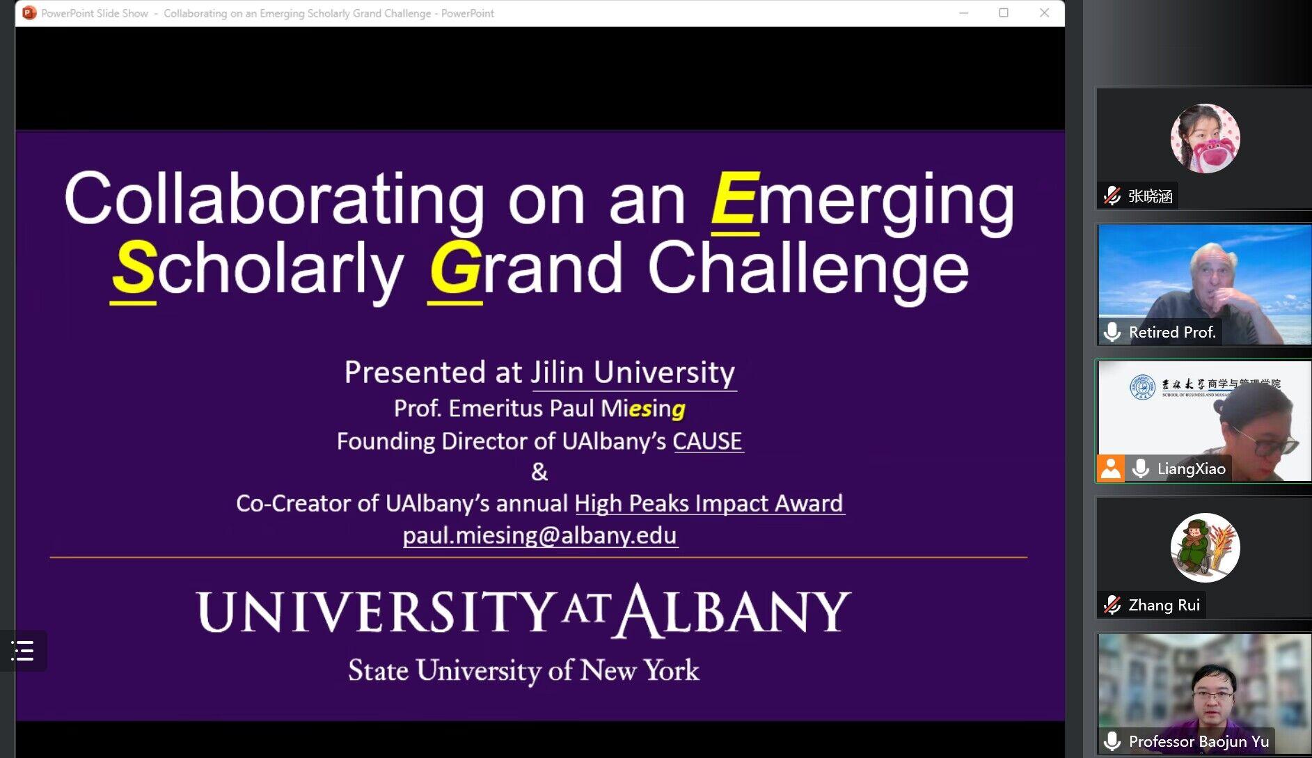 管理科学与工程系邀请了美国纽约州立大学奥尔巴尼分校(SUNY at Albany)商学院的荣休教授Paul Miesing为学院的师生进行了一场题目为《Collaborating on an emerging scholarly grand challenge》的学术讲座,讲座通过腾讯会议以线上的形式进行。探花