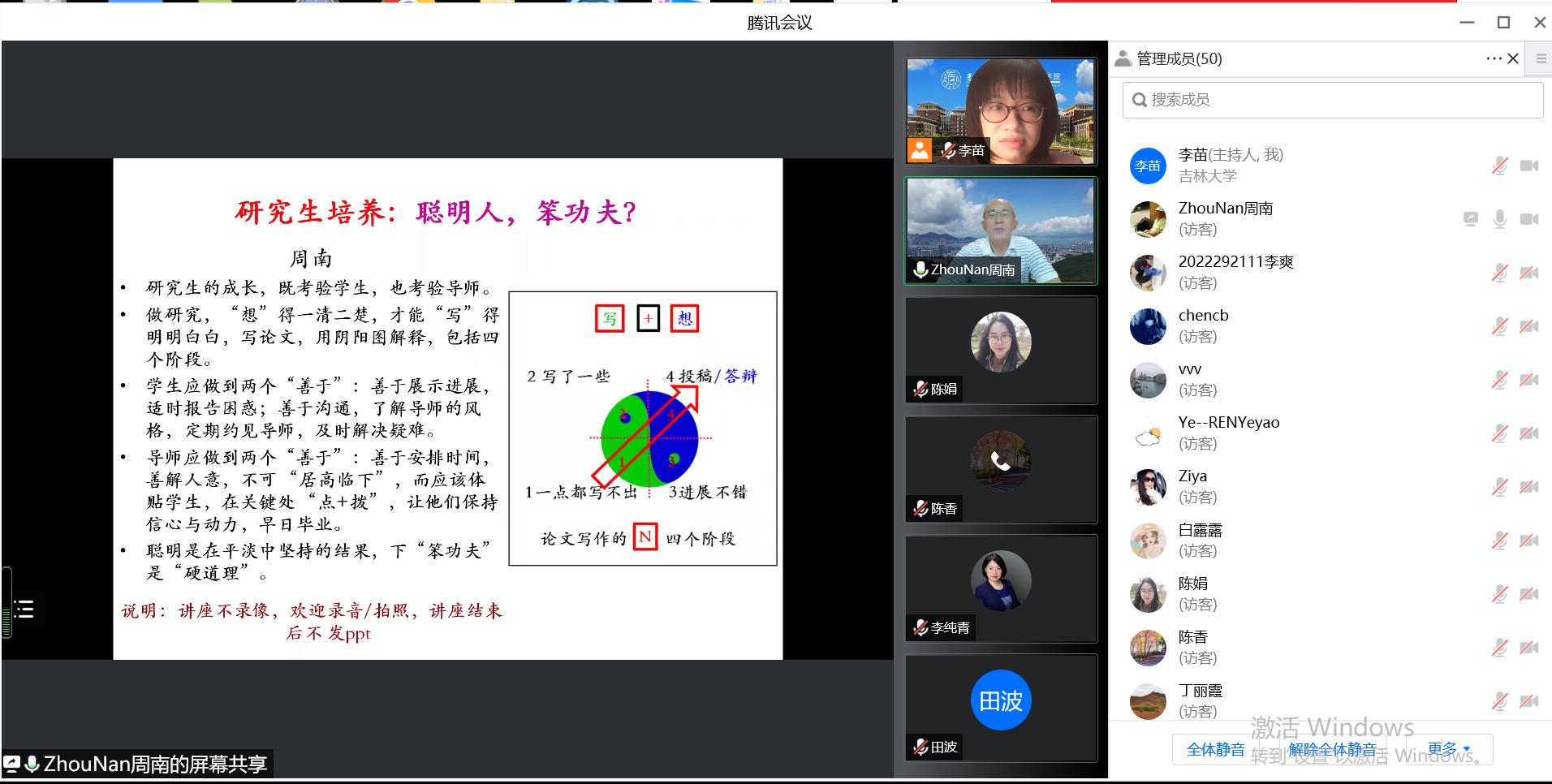 2022年10月31日傍晚,我们有幸邀请到了著名华人营销学者周南教授为我们作主题为《研究生培养:聪明人,笨功夫?》的线上学术报告。本次会议由探花