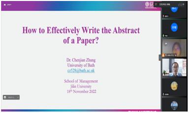 张陈健副教授现任英国巴斯大学管理学院副教授,博士生导师。于德国不来梅大学获得博士学位,斯坦福大学访问学者。研究兴趣包括经济社会学,制度理论,企业家网络,社会企业等。学术成果发表于Strategic Management Journal, Journal of International Business Studies, Management and Organization Review等。为顶尖管理期刊担任审稿人员并系统地参与过学术写作训练,现担任Management and Organization Review高级编辑。本场讲座题目是:如何有效写作论文摘要?张陈健副教授介绍了摘要写作的4W方法,主要从过去的研究和连接性陈述、我们的研究做了什么、我们的研究发现了什么以及为什么这个发现是有意义的这四个方面介绍了如何有效写作论文摘要,使人力资源管理系的师生受益匪浅。