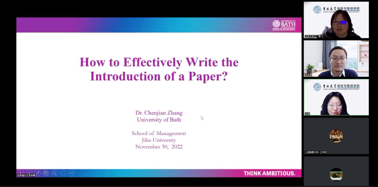 此次讲座题目是:如何有效写作论文引言?首先,张陈健副教授介绍了引言的重要性。之后,陈健老师从4W方法出发,介绍了引言写作技巧,包括研究主题有趣性和重要性、对过去研究的总结、我们的研究做了什么,以及我们的研究发现了什么四个部分。在总结阶段,陈健老师着重介绍了引言写作过程中经常发生的问题,以及摘要和引言的区别。