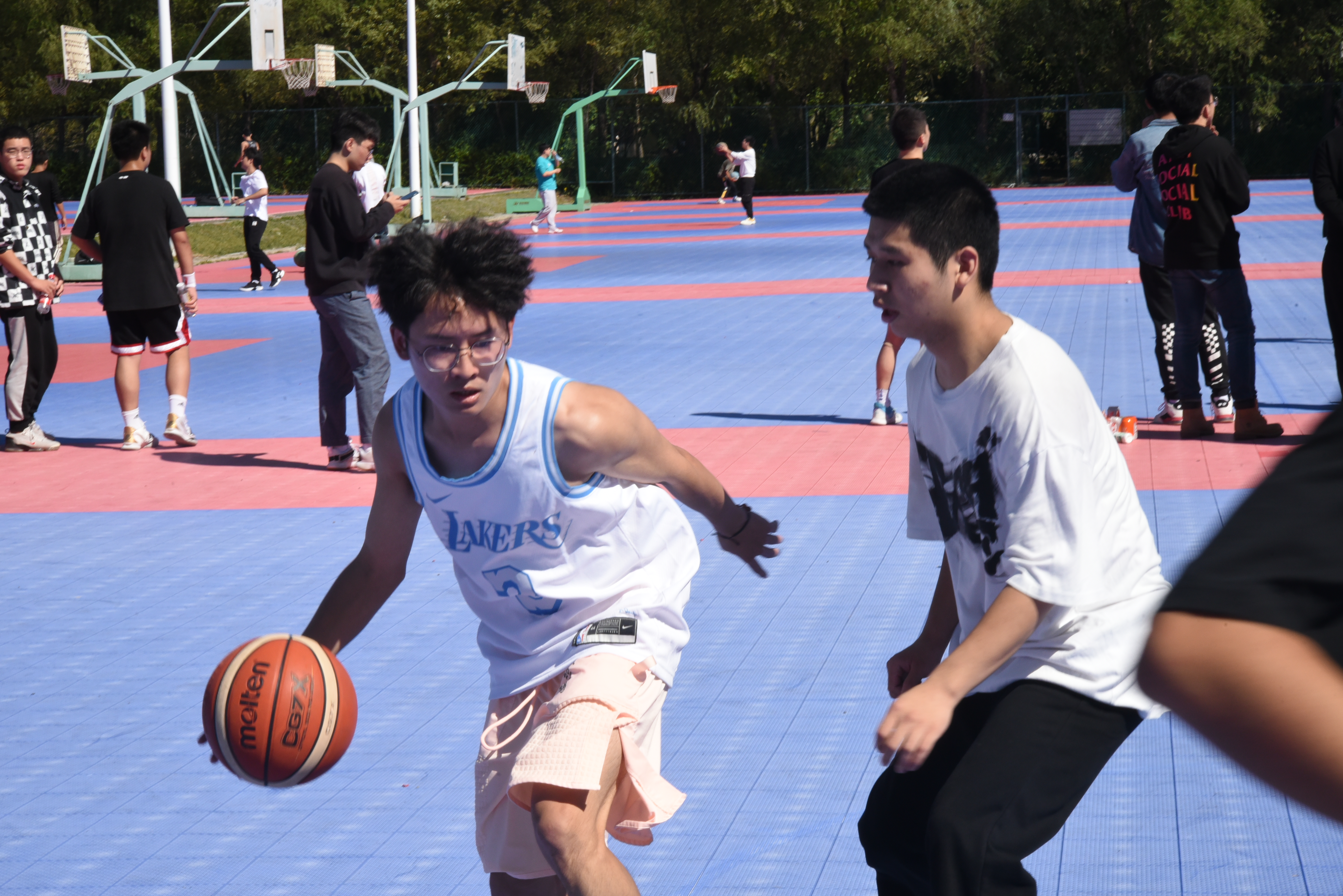篮球赛要求同届组队,每队8至9人。各年级同学积极响应,纷纷组成球队,共有13支新老生组成的队伍参与到比赛当中。篮球场上,双方队员你争我夺,或攻或守,不放过每一个得分的机会,力争进球,赢得比赛。9月24日下午,经过多场激烈的角逐,最终有四支队伍进入了第二天的决赛。当天下午4时,篮球场上还组织了一场女子篮球赛,姑娘们身着队服,斗志昂扬。她们配合默契,控球游刃有余,运球、传球、卡位、穿插、抢断、快攻、上篮、投球,动作帅气利落,赢得了现场观众的阵阵掌声与喝彩,展现了巾帼不让须眉的飒爽英姿。